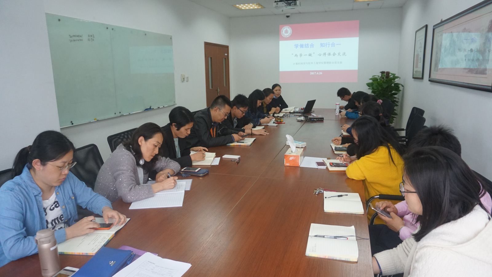 为全面落实“两学一做”学习教育常态化,深入探讨交流,强化党员的组织和身份认同,计算机科学与软件工程学院管理联合党支部于4月26日中午12:30-14:30在理科大楼1102召开“学做结合 知行合一”“两学一做”心得交流会,全体党员参加会议,会议由党支部书记谢书玲同志主持。