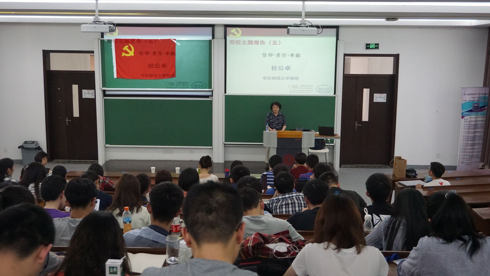 5月10日下午,计算机科学与软件工程学院和河口海岸科学研究院第十五期联合党校迎来了党校课程的第五次主题报告。报告主题为“信仰·责任·奉献”,由原校党委副书记、思想教育专家、杜公卓教授主讲,旨在告诉同学们,信仰、责任和奉献对一名党员的重要性。