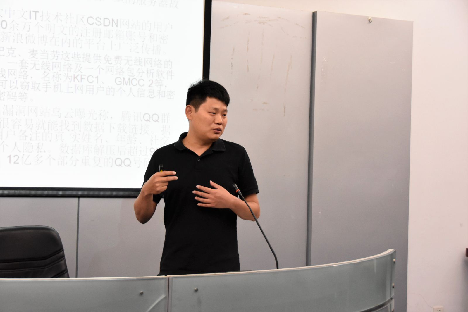 伴随着信息技术日新月异的发展,网络安全问题日益严重,如何有效地解决这一问题已经成为了关乎我国经济、社会、民生的重要课题。2017年国家网络安全宣传周以“网络安全为人民,网络安全靠人民”主题在全国范围内拉开帷幕,其目的在于深入贯彻落实习近平总书记系列重要讲话精神和总体国家安全观,学习宣传习近平总书记网络强国战略思想。为帮助同学们更好地了解网络安全的有关课题,着重培养自身网络安全防范意识,9月21日15:30,我院在理科楼A510举行《信息安全与密码学》讲座。讲座由朱丹老师主持。
