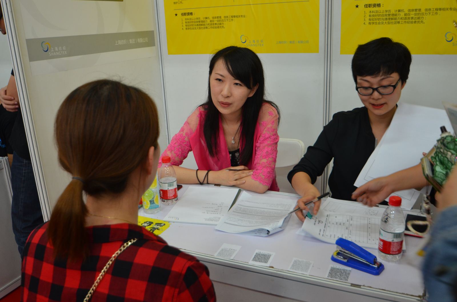 招聘会现场气氛热烈,吸引了近300名学生前来现场应聘,包括我校计算机与软件工程、心理、信息科学、经管学部等多个院系以及上海交通大学、东华大学等外校毕业生等。