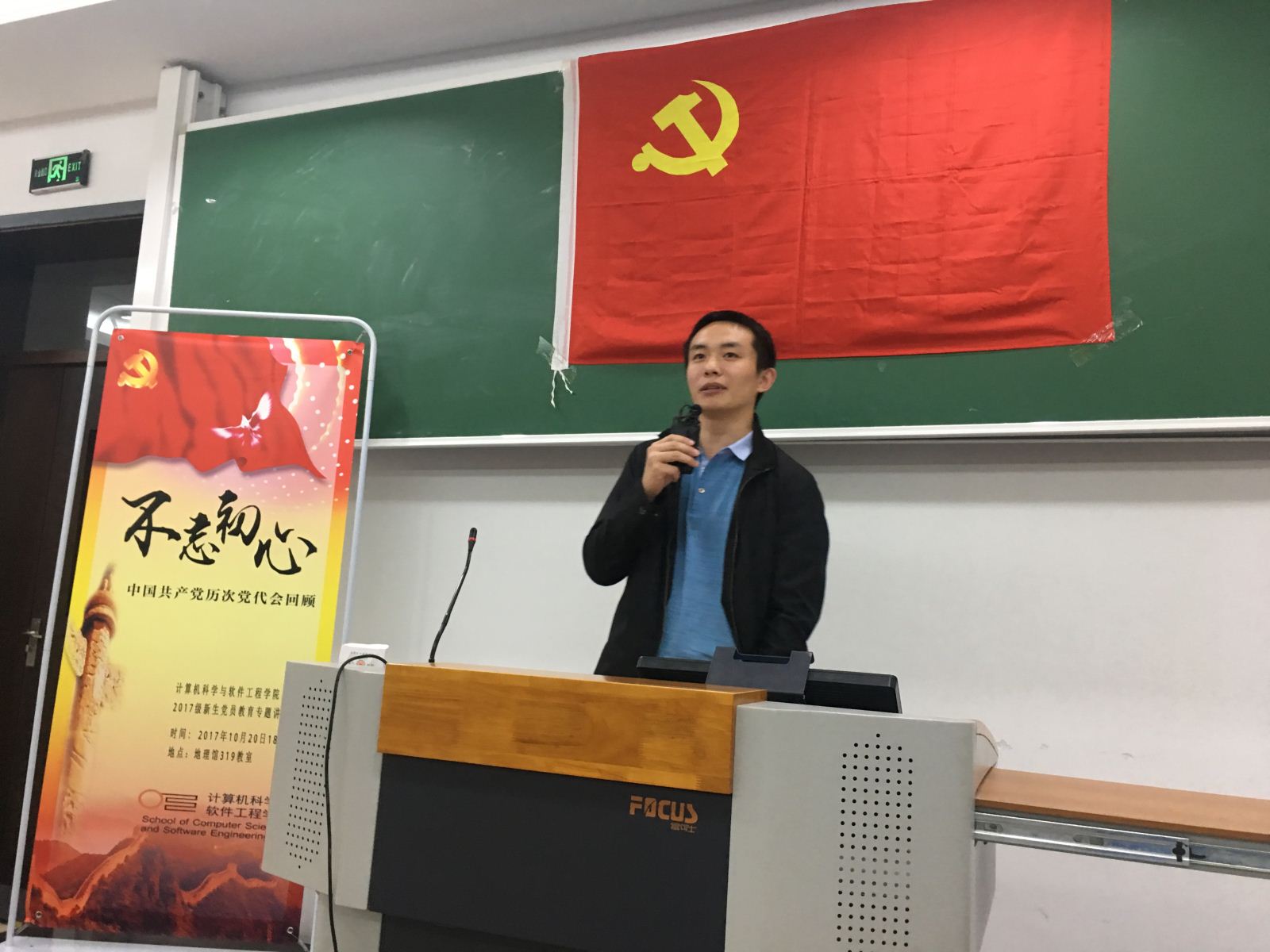 秋风浩荡,旌旗飞扬。计算机科学与软件工程学院于10月20日下午举办了2017年新生党员教育专题讲座,讲座主题为“不忘初心,回顾党的历次代表大会”,本次讲座由学生工作部副部长李彦垒老师主讲,带领新生党员们学习中国共产党第十九次全国代表大会报告的主要思想,回顾党的历次代表大会,帮助新生党员同志更加清晰的认识到党代会的性质和主要内容。计算机科学与软件工程学院党委副书记兼副院长洪燕,辅导员刘国艳、赵婧媛、杨文彧、金映辉等出席了活动。