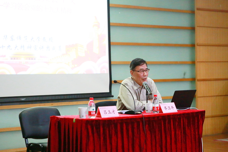 11月10日下午,计算机与软件学院数据科学与工程系党支部携手校工会妇委会联合党支部、马克思主义学院思想政治教育系党支部、附属幼儿园党支部,特邀中共上海市委十九大精神宣讲团成员,我校终身教授齐卫平,给所属支部党员作主题为《新时代坚持和发展中国特色社会主义》的十九大精神学习辅导报告。计算机科学与软件工程学院计算机科学与技术系、嵌入式系统系、管理联合党支部教职工党员共同参与学习,报告会由工会妇委会联合党支部书记吕玉才主持。