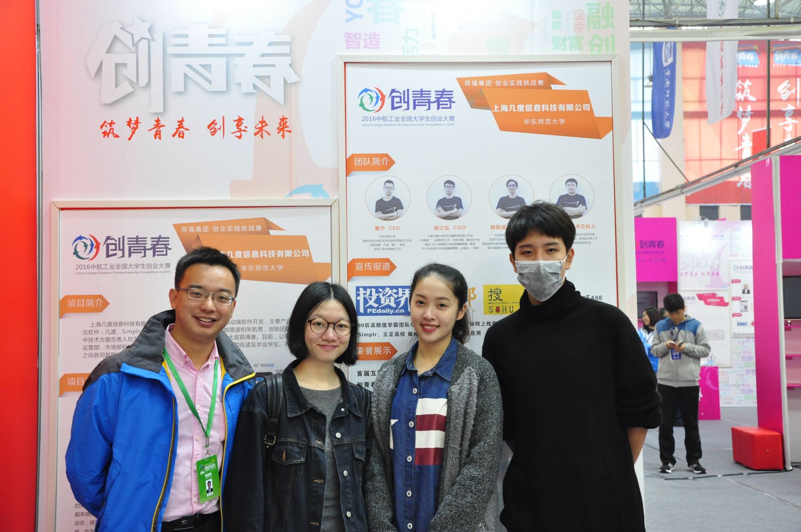 作品简介:上海几度信息科技有限公司由华师大在校生姜宁、姚银波、朱凯南和等共同创立。其中姚银波为我院软件工程08级本科生和12级硕士生,朱凯南为我院12级本科生,后团队陆续吸引多位我院本科生加入。该团队专注于学生和青年群体社交领域,先后推出几度、Simplr、Which、Friday等社交应用软件,曾获创业接力基金数百万人民币天使轮投资、青松基金近千万Pre-A轮融资。