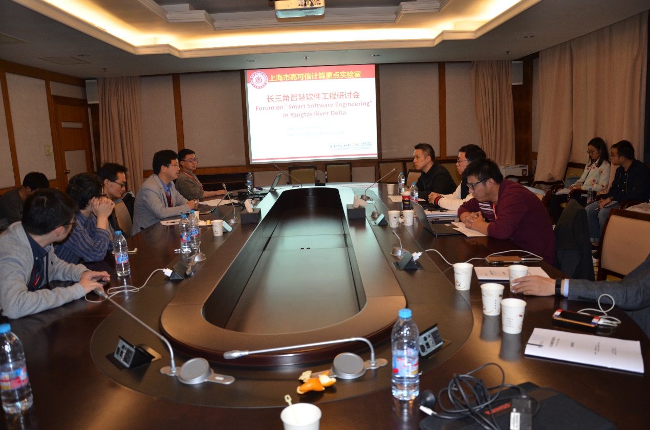 由我校上海市高可信重点实验室举办的“长三角智慧软件工程主题研讨会”于2017年11月10日至11日在我校中山北路校区顺利召开。会议邀请了包括浙江大学、杭州电子科技大学、南京大学、东南大学、南京航空航天大学、中国科学技术大学、复旦大学、上海交通大学、上海科技大学、华东理工大学、上海大学等十几所长三角地区高校的计算机软件领域的优秀中青年研究专家与学者参会,并分别在会议上报告各自团队近期研究中的进展与成果,分享在智慧软件领域的观点,研讨该领域的技术现状,探讨智慧软件未来发展趋势。