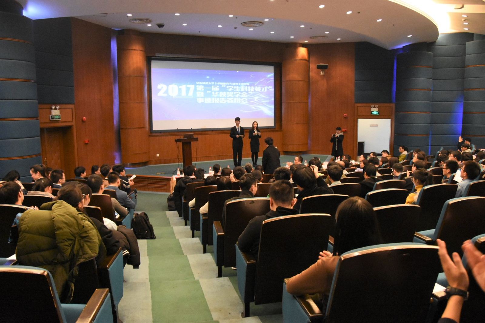 12月21日下午,计算机科学与软件工程学院第一届“学生科技英才”暨“华荻奖学金”事迹报告答辩会在逸夫楼报告厅举行。11位候选人展示了自己的科研成果,经过专家投票、观众投票和线上投票,最终5位学生荣获学院第二届“学生科技英才”。华东师范大学对外联络处处长邢和祥、华学工部副部长李燕、团委副书记梁宏亮、上海华荻资产管理有限公司CTO王南等嘉宾受邀出席,我院党委副书记兼副院长洪燕、副院长蒲戈光、计算机科学技术系主任贺樑、密码与网络安全系副主任曾鹏、软件科学与技术系副主任张民、数据科学与工程系副主任王祥丰以及学院全体辅导员出席了本次报告会。