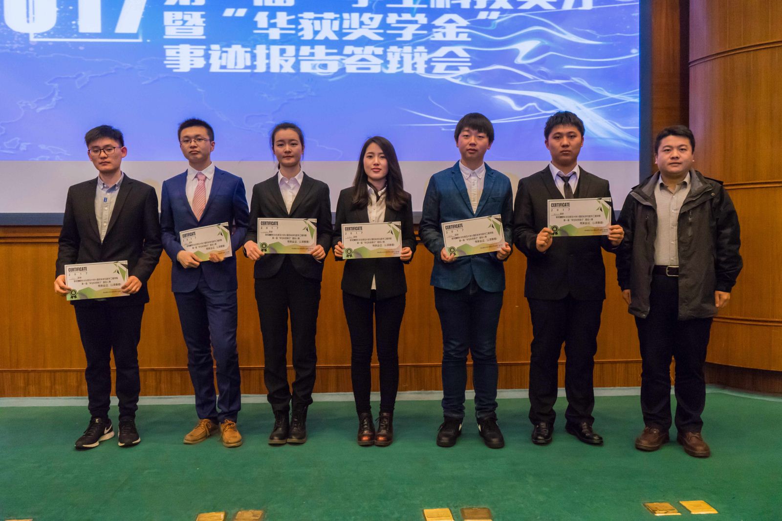 最终,宋扬、李晨瑞、曹智杰、乔丹、毛侠5位同学脱颖而出,荣获“学生科技英才”称号和“华荻奖学金”;方诚颖、姜梦晓、钟鸣、乔丹四位同学获得了“网络人气奖”;方诚颖、黄承扬、钟鸣、姜梦晓、王茂全、陈伟文7位同学获得了“学生科技英才”提名奖。