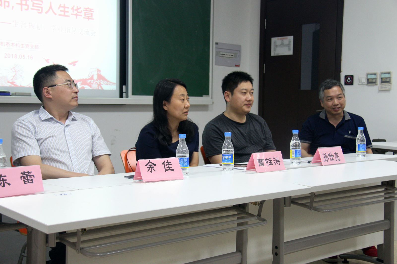曹桂涛老师首先为本次交流会致辞,她阐释了本次交流会的举办目的,希望能通过本次活动增进同学们相互之间的认识与了解,促进同学们的学业进步。她的发言中流露出了对同学们的殷切期望。接着,余佳老师、孙仕亮老师与陈蕾老师分别就之前收集的提问进行了解答。余佳老师告诉同学们在学习生活中要戒骄戒躁,摒弃浮躁的心理,脚踏实地前进,不要过分寻找捷径。孙仕亮老师表示,大学中会遇到接连不断的选择问题,而具体如何选择需依靠对自我的认知和实际情况来进行判断。陈蕾老师则为同学们提供了新的思考方向,建议同学们通过创新创业活动,在实践创造中进行更深入的思考,找到自己的答案。