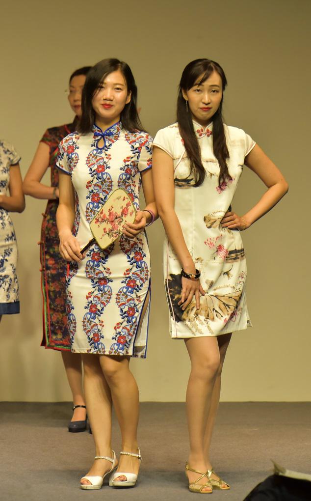 与上届参赛时的多系列服饰不同,本次展示我队选择中式改良作为唯一着装风格,风格的聚焦更好凸显了“抛开面具,秀出真我”这一主题。由专业国画师肖美老师根据服装色系,手工精心绘制在宫扇上的戏曲脸谱,成了我队的“秘密武器”,其醒目带有强烈符号感的中式风格与服装完美契合。林晶晶、陈蕾、孙玉灵、窦亮、朱敏、杨云、赵婧媛、丁金花、陈仪香、陈彪十位教工组成了最终战队。特邀职业模特刘恋和隋欣冉担任指导,其中刘恋老师曾获环球小姐亚军。