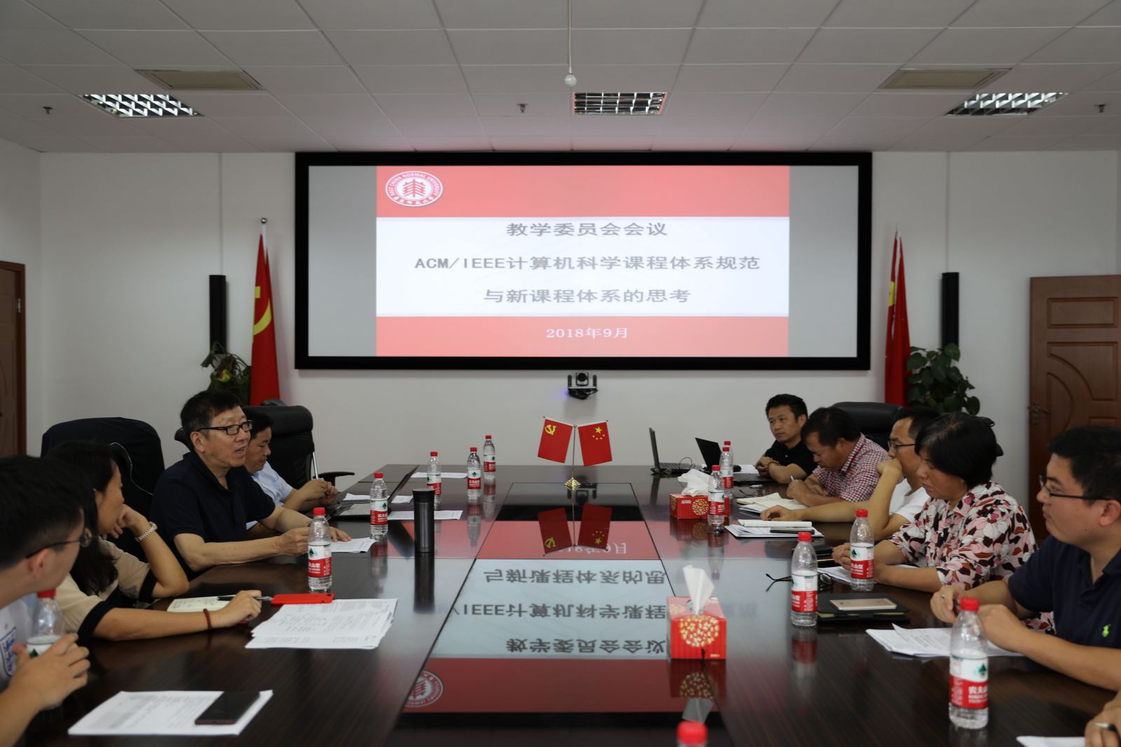 为加强学院人才培养机制的完善、课程设置的优化、实验室资源的整合,进一步推动新学期的教学改革,2018年9月5日计算机科学与软件工程学院在临近开学前召开了学院教学委员会工作会议,进行了以“ACM计算机本科国际标准课程体系规范”为题的主题研讨,出席会议的有学院院长何积丰,党委书记、常务副院长王长波,党委副书记兼副院长曹桂涛,副院长姜宁康,教学指导委员会主任朱惠彪以及全体委员。会议由朱惠彪教授主持。