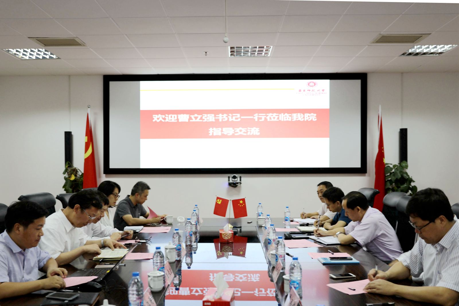 汪荣明副校长对曹立强书记一行前来指导工作表示欢迎,并感谢了普陀区政府对学校在人才培养、科学研究、社会服务等工作的大力支持。此外,汪校长还介绍了我校两校区办学总体格局、学科建设、人才培养、社会服务、综合实力等情况和发展思路。