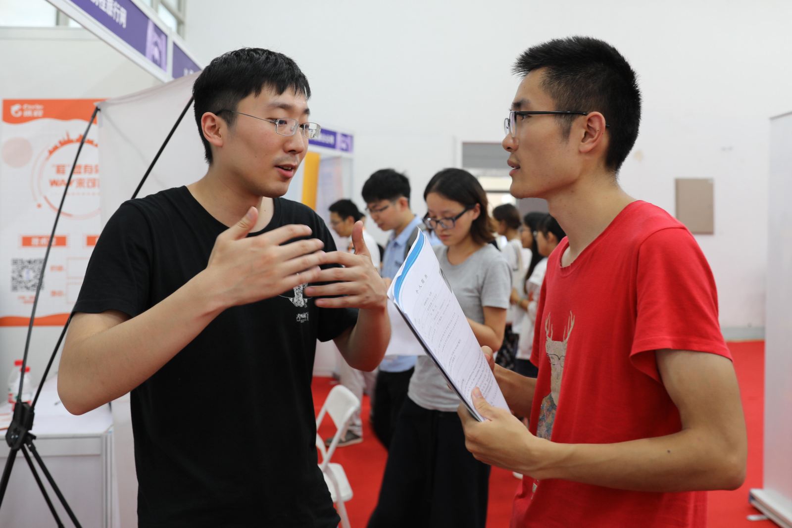 当天虽天气炎热,但同学们的热情却丝毫未减。本次招聘会吸引了包括我校计算机科学与软件工程、信息科学技术、数学、心理等多个院系以及上海大学、东华大学等在内的近350名同学。现场人头攒动,气氛热烈。同学们积极与招聘单位沟通交流,主动了解用人单位及岗位需求情况。参会的招聘企业和校友员工从不同角度为同学们答疑解惑,增加彼此间了解。部分本科低年级同学也前来观摩,以提前了解招聘流程,帮助做好未来职业生涯规划。