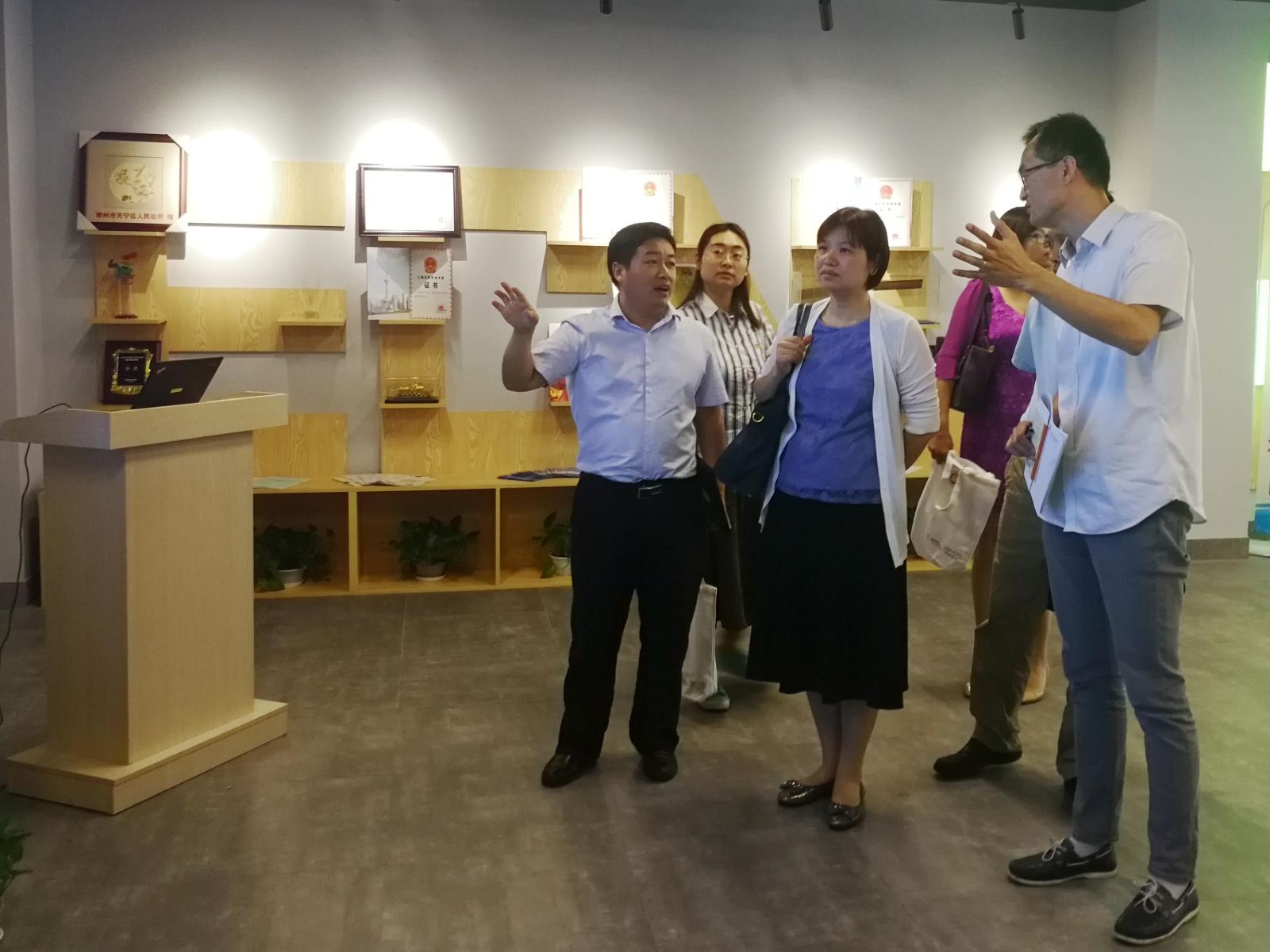 座谈会后,何立芳副处长一行在学院教师的陪同下,参观了教育部可信软件国际合作联合实验室的成果展示,更深入而直观的了解了实验室从创建至今的获奖情况、人才培养成效及科研成果等。