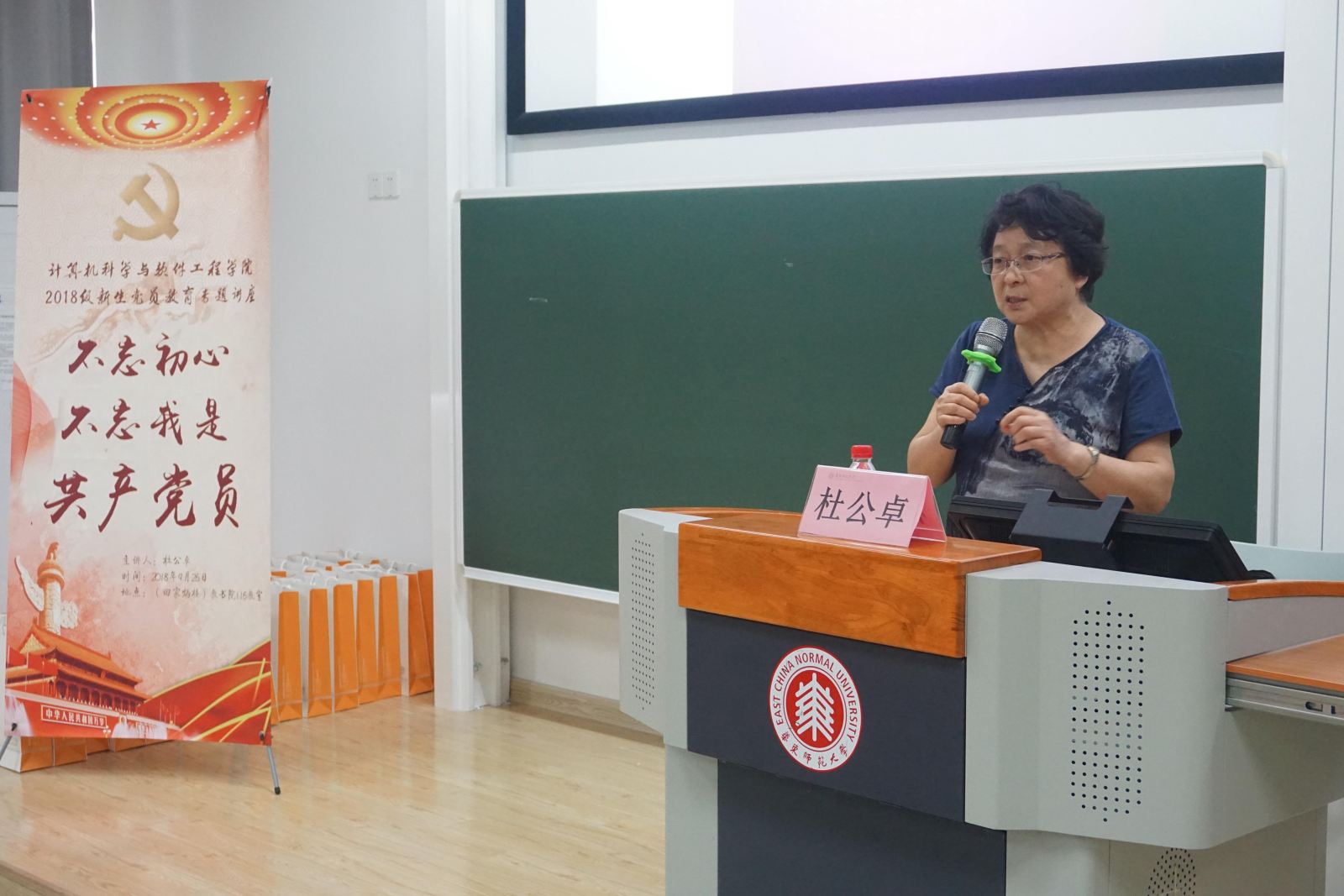 为了迎接2018级新生党员、做好基层党组织的建设工作,计算机科学与软件工程学院于9月26日下午进行了2018级新生党员教育专题讲座。讲座在中北教书院116教室进行,学校原党委副书记、学院特邀党建组织员杜公卓教授作了《不忘初心,不忘我是共产党员》的专题报告。