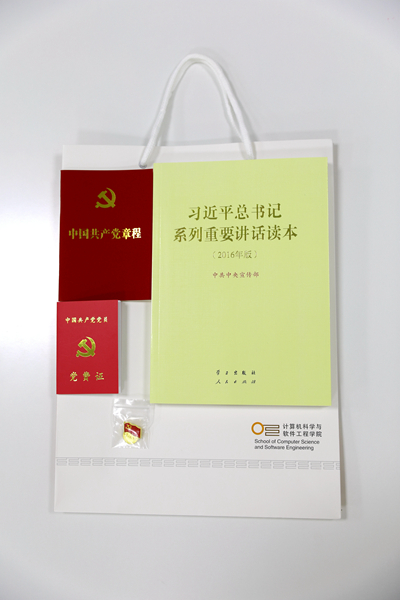为了增加新生党员的身份认同感、加强党员意识,今年的开学典礼中,一个特别环节就是由学院党委委员为新生党员代表佩戴党员徽章,并授予他们党员成长口袋,口袋中包含一枚党徽、一本党章、一本党费证以及习近平总书记重要讲话读本。贴心的举措,鲜红的党章,与新生党员共寻那份入党的初心。