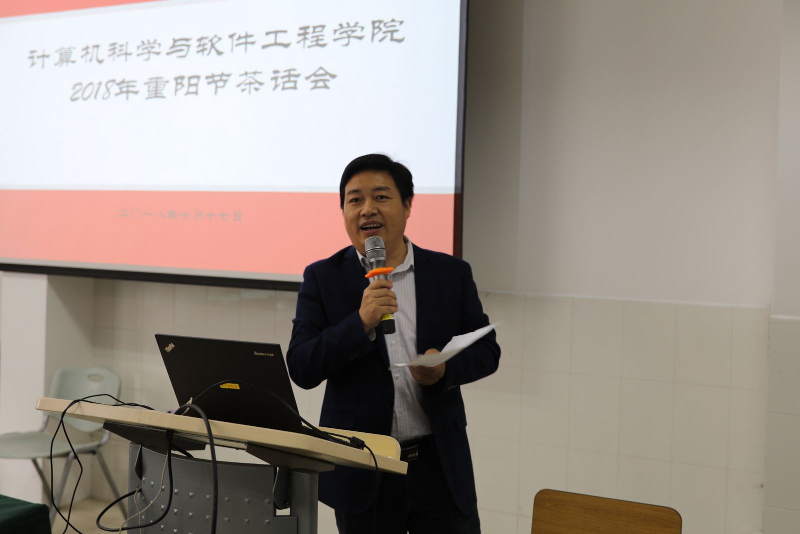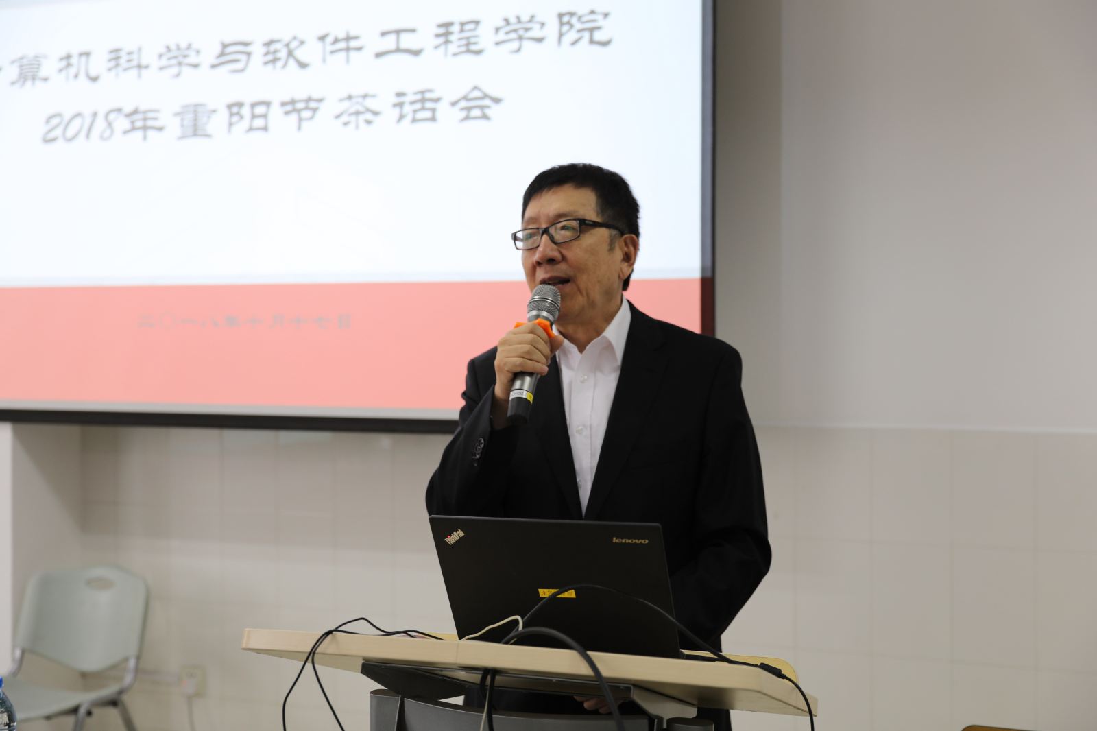 10月17日重阳佳节,虽是金秋十月,秋意渐浓,但理科大楼B222室内一片温馨热闹,退休教师欢聚一堂,共度上海市第31个敬老节,茶话重阳。学院院长何积丰、党委书记兼常务副院长王长波、党委副书记兼副院长曹桂涛、院工会主席宫学庆等出席茶话会。茶话会由王长波书记主持。