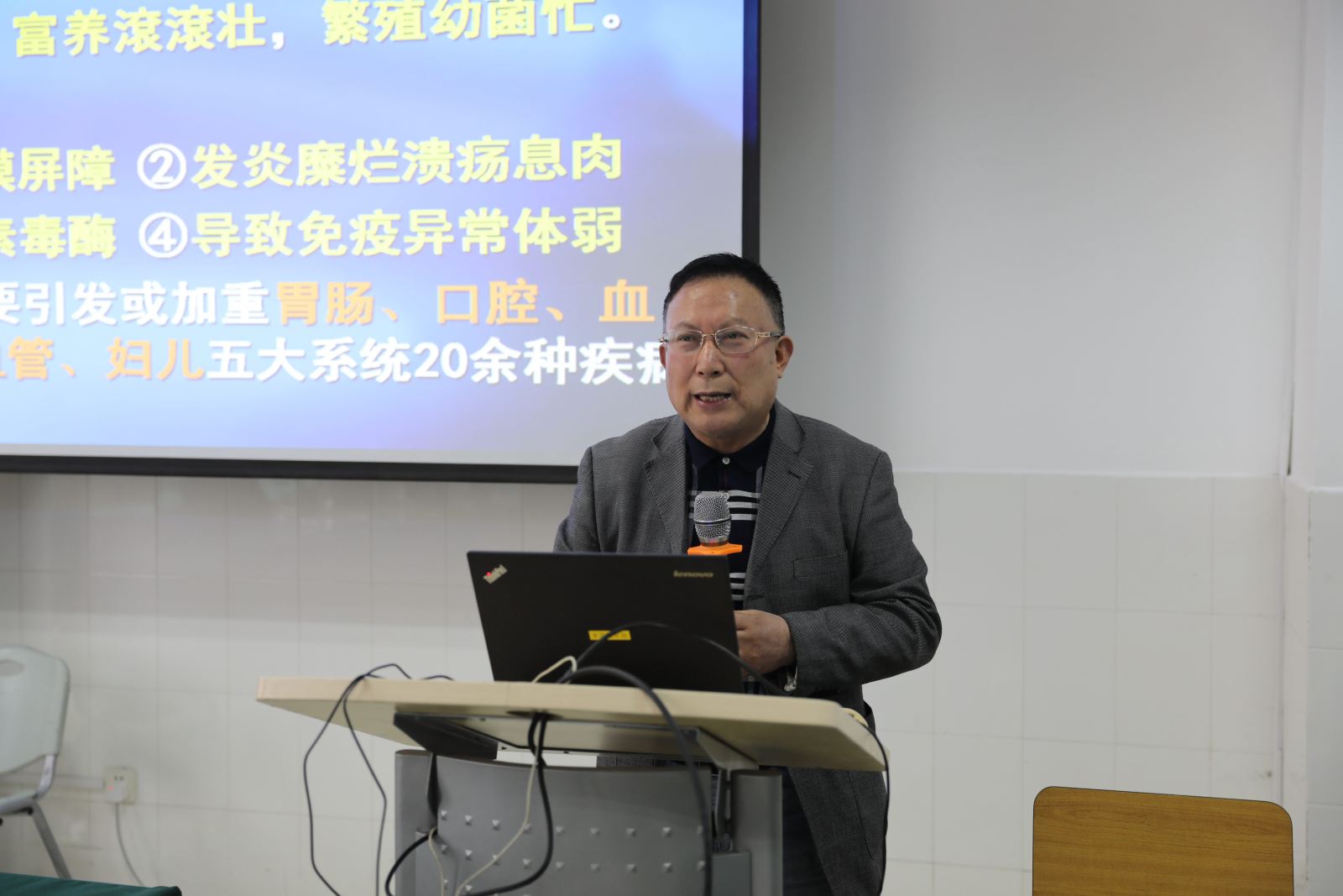 健康,一直是退休老师十分关心的话题。此次,学院特邀上海阿特蒙医院高级医疗顾问、胃肠镜中心储榆德主任来为退休老师进行健康讲座。储医生是世界记录医师、上海十大名医、上海市健康大讲堂胃肠首席专家,曾获感动中国2016季度榜首人物。他一直热心于健康知识的科普与公益讲座,此次重阳节茶话会,特意为老同志们带来一场关爱胃肠健康的主题讲座,祝愿大家健康快乐。储医生风趣幽默,讲座在轻松的氛围中圆满结束,老师们意犹未尽,纷纷与储医生交流互动。