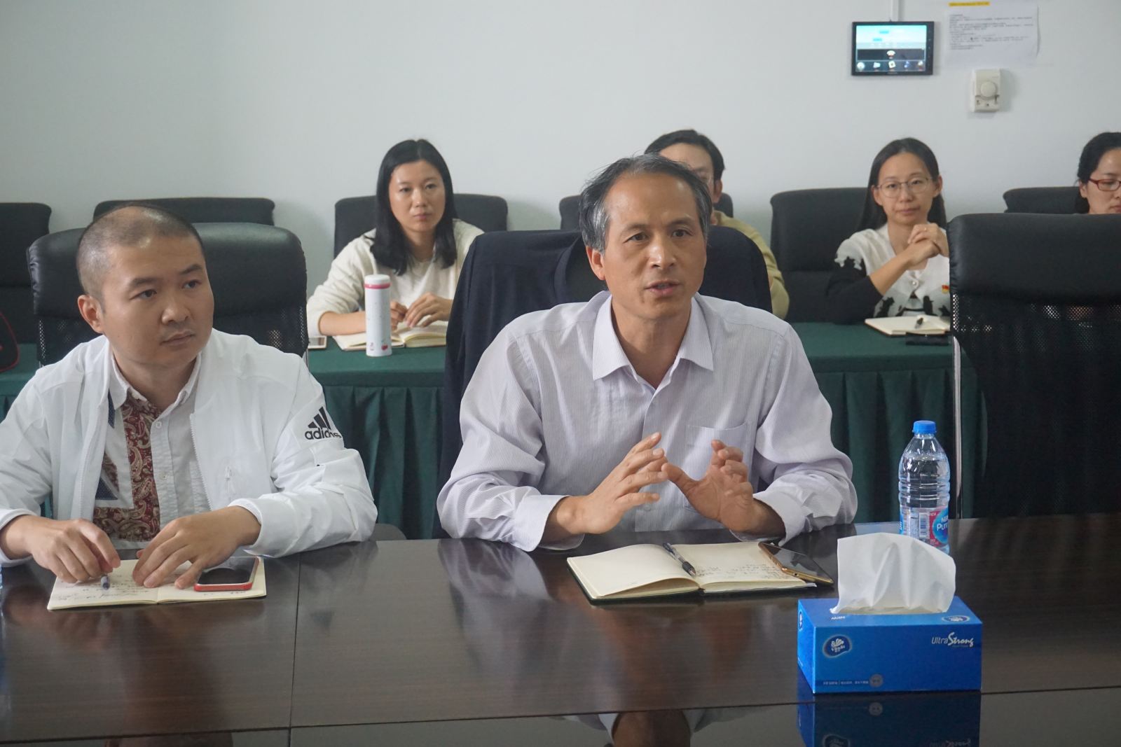 随后,师生以“深化全员育人理念,激发创新创业新动力”为主题,开展学习交流讨论。学生积极参与讨论,从就业落户政策、关于创业、关于参加创业比赛、学校拥有的能对接的资源等各方面进行提问,并与在座的老师们互动交流,老师们根据各部门的工作给予详细的解答。书记助理彭超在讲话中提出对于项目的挖掘要重视三个层面:(1)互联网+比赛在未来十年将会持续举办,我们要有长远眼光。(2)对于重点教师的挖掘,师生共创项目的孵化。(3)注重专业之间的融合,技术加市场化思维才能形成强有力的队伍。