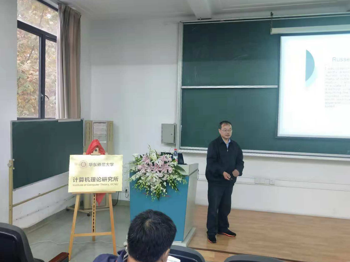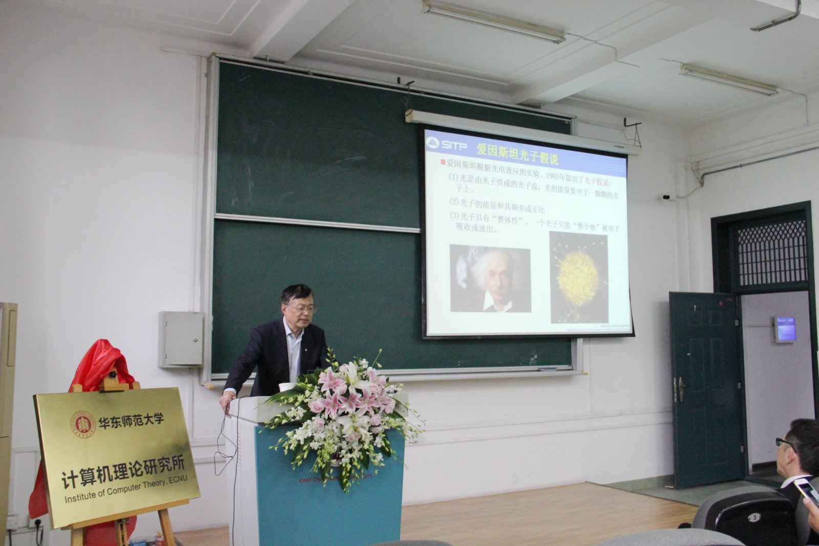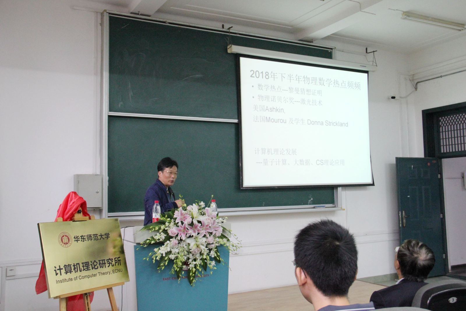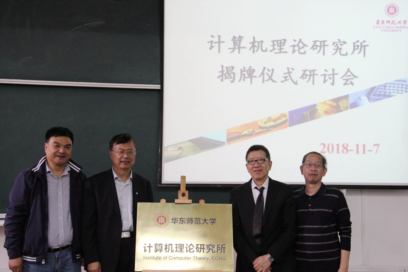 计算机理论研究所揭牌仪式暨学术研讨会于2018年11月7日在华东师范大学中北校区成功举行。中科院上海技术物理研究所的王建宇院士、北京应用物理与计算数学研究所刘杰研究员、中国科学院数学与系统科学研究院胡星标研究员、中国科学院数学与系统科学研究院闫振亚研究员、上海交通大学朱佐农教授、复旦大学范恩贵教授,学院院长何积丰院士、党委书记兼常务副院长王长波教授、副院长周爱民研究员、党委副书记兼副院长曹桂涛副教授及计算机理论研究所师生出席了此次揭牌仪式和研讨会。计算机理论研究所所长陈勇教授宣布研讨会开幕。