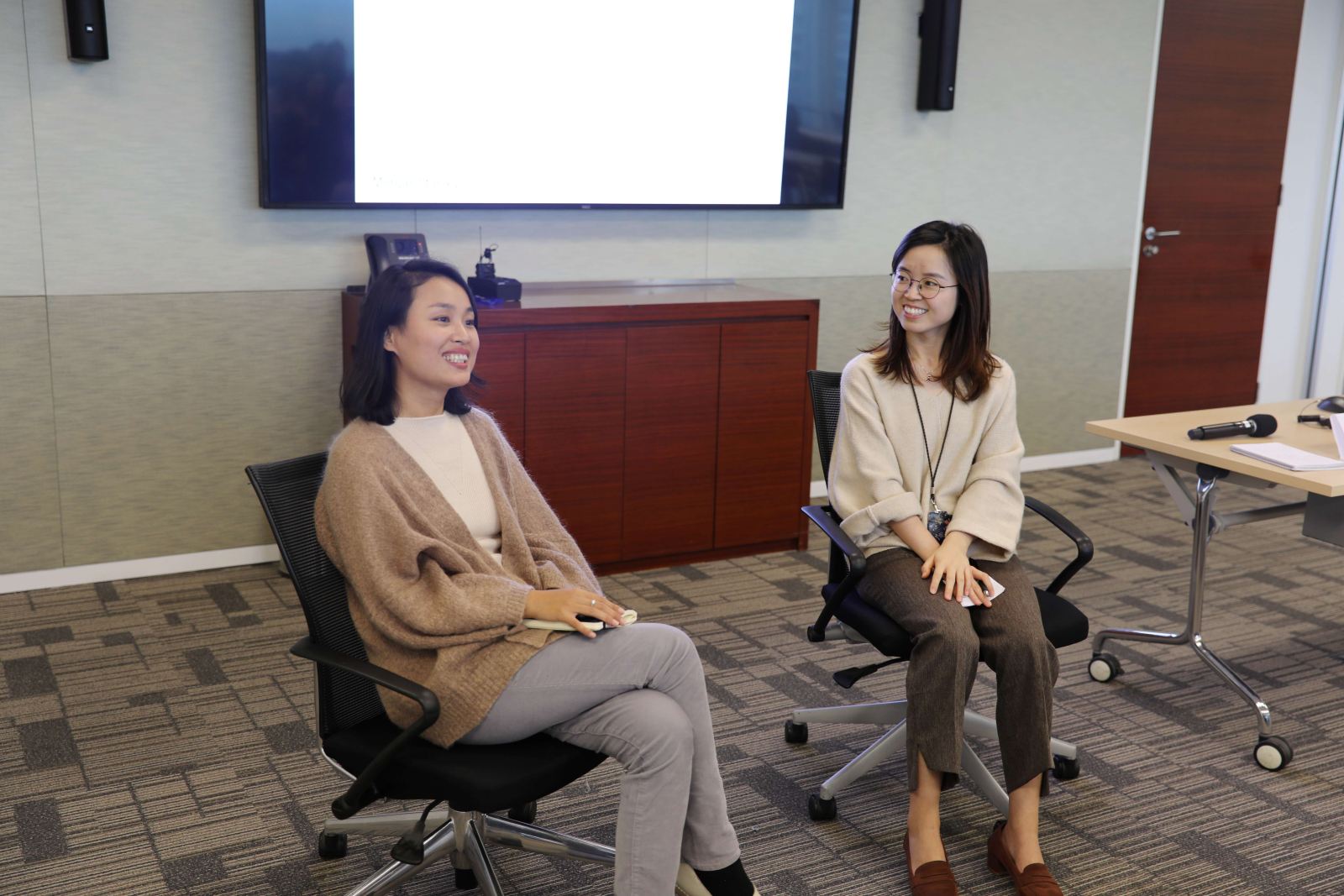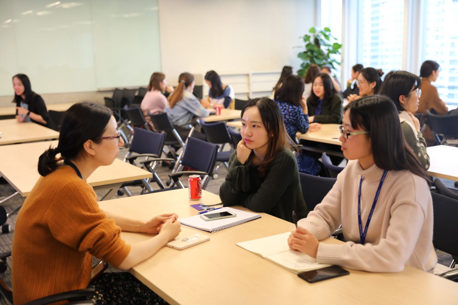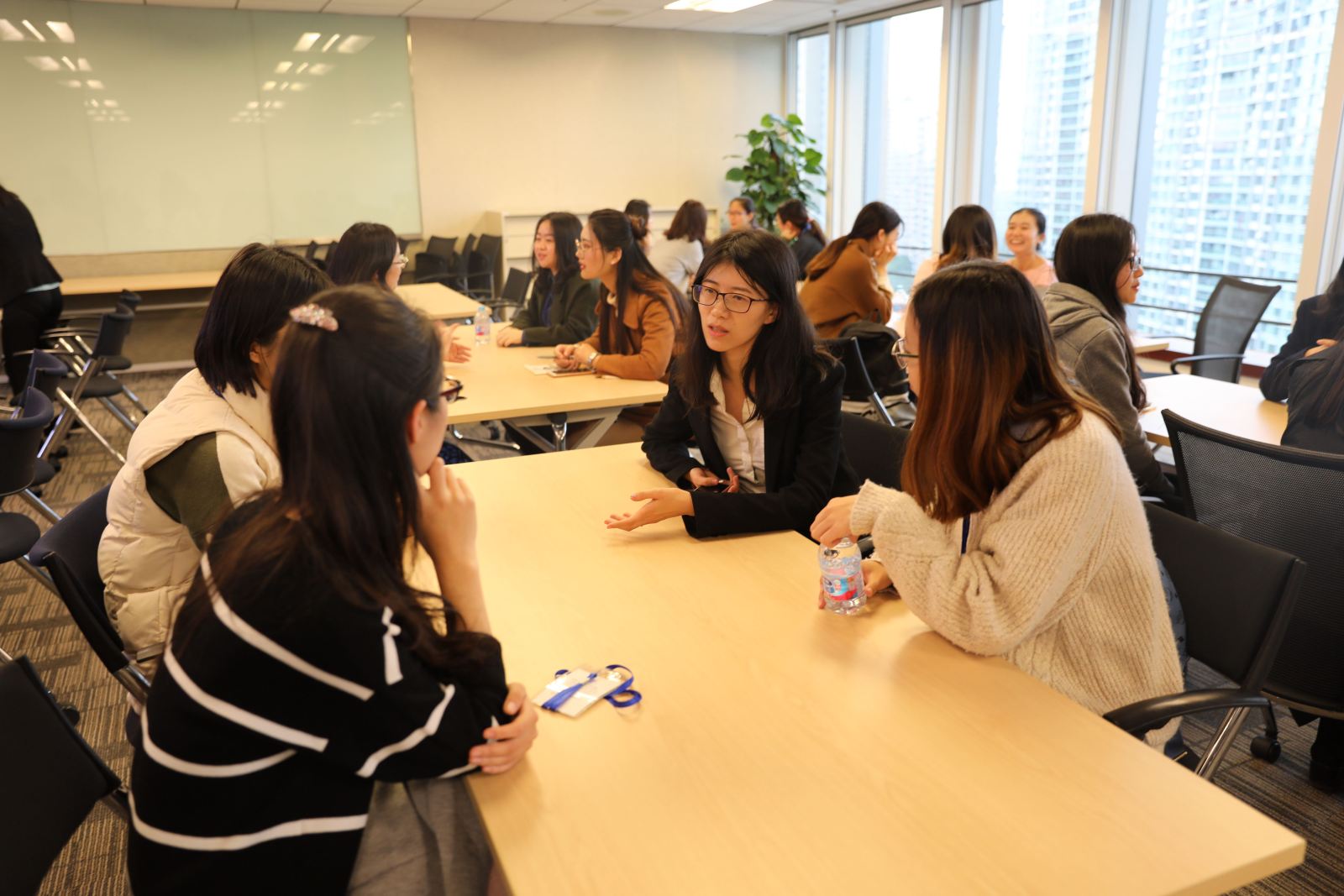 在了解了公司和项目的背景之后,HR Ruby Li现场公布了企业导师与现场学员的配对情况。9位企业导师与各自的小组成员开展了圆桌见面会,导师们分享了自己在公司的工作经历,全方位地回答了学员们困惑的问题。大家讨论热烈,气氛融洽。双方互留了联系方式并约定了下次会面的时间。