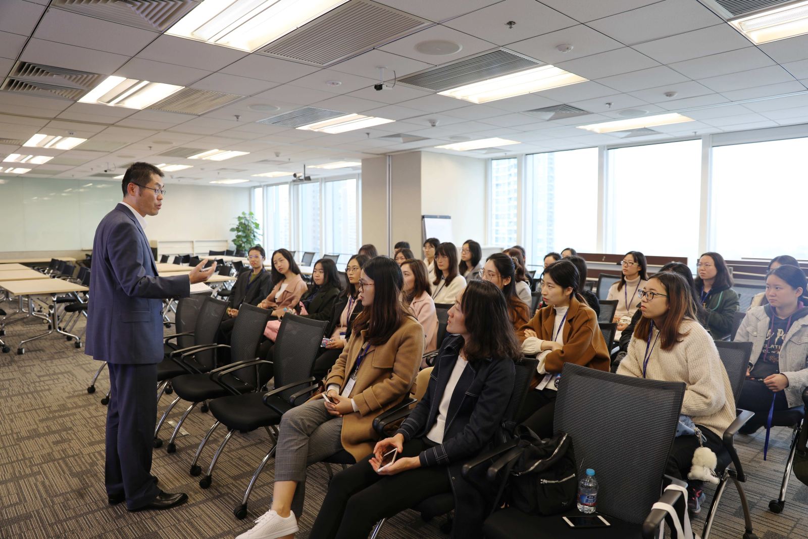 摩根士丹利人力资源部Wilson Qiu首先对学院师生的到来表示欢迎,并简要介绍了公司的基本情况以及项目的建设初衷和开展形式。Wilson表示,本项目为期6个月,旨在为学院女同学与在摩根有丰富工作经验的Women in Technology导师之间提供沟通和交流的平台,学员与导师之间的沟通方式和交流内容不限。希望同学们积极主动联系导师,增进彼此之间的了解,双方还可以从职业导师的关系转变为知心朋友。