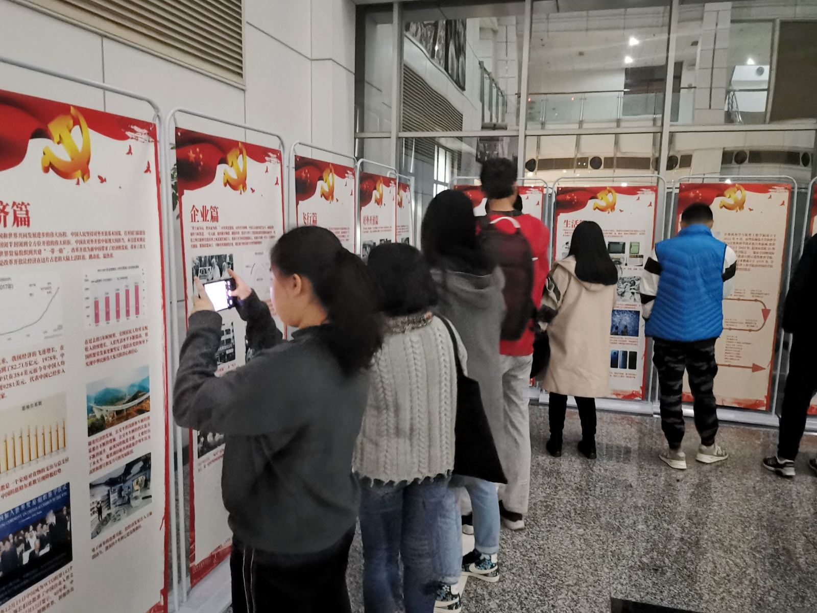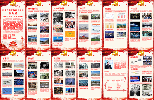 十组党章学习小组的同学通过交流探讨,找出了自己眼中具有代表性的改革开放带来改变的图片,通过总结整理以易拉宝的形式分为了十一个主题进行展示:军事领域,用汗水与智慧实现了从前之不敢想,从前之不敢为,四十圈年轮记录着军事人的赤诚之心;科技领域,所有科技人不耽于空想,不骛于虚声,怀抱科技兴邦的伟大使命,将振兴中华作为终生信仰;经济领域,中国从引进来到走出去,终始旧貌换新颜,是经济在这片古老的大陆上活跃着,跳动着,温热着;教育领域,从破旧的教室到窗明几净的楼房,从书面教学提高到现代化的电子全自动化教学,践行着少年强则国强的观念;生活领域,在图片的记录之中感受时代洪流冲刷下中国人民生活的历史巨变;企业领域,一代又一代紧跟时代潮流、紧抓政策风口、不断改革创新的企业,创造了令世界惊叹的奇迹;出行领域,交通作为经济社会发展的先行官,从绿皮车到高铁、从自行车到网约车,出行方式见证着改革开放带来的巨大变迁;飞行领域,中国用前进的目标激励自己,用比较的差距鞭策自己,用吃苦的精神、攻关的决心让航天梦照进现实;城市领域,许多城市发生了翻天覆地的变化,在这个契机下,逢山开路、遇水架桥;对外开放领域,中国人民始终敞开胸襟、拥抱世界,用双手书写了国家和民族发展的壮丽史诗;图片展还特别增加了学院篇的部分,从领航人何积丰院士到学院一大批敬业杰出的教师,从艰苦的教学科研环境到完备的硬件设施和优良的实验室环境,学院在多年的积累和创新中培养出了一批又一批胸怀追求、为国担当的卓越软件人才。