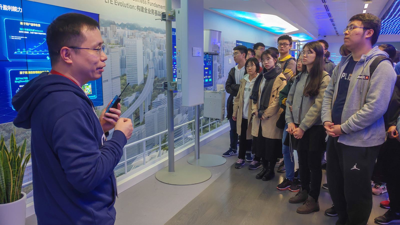 参观完整体建筑后,同学们又来到5G无线实验室。从各式各样的手机、平板到路灯、基站、充电桩三合一器件,再到智能养殖,华为一直在为实现5G在工业、商业、居家以及医疗等领域的全覆盖奋斗。从中,大家都能看到华为“构建万物互联的智能世界”的愿景,感受到其宣传语“华为,不仅仅是世界500强”背后蕴藏的巨大能量。 华为正在用自己的实力告诉全世界——未来已来!