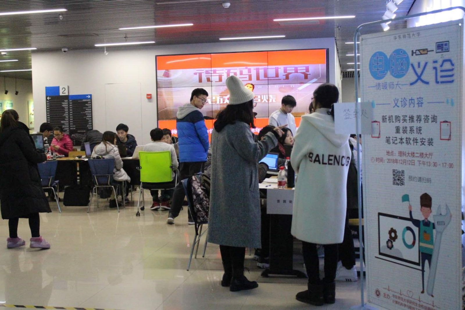 12月12日下午,学校研究生会权益调研部与计算机科学与软件工程学院研究生会联合举办的”情暖师大·电脑义诊”活动在理科大楼二楼举行。现场11位电脑维修志愿者共接待了50余位前来维修咨询的师生。学院学生积极参与,发挥专长,奉献爱心,用实际行动给这个冬天多一度的温暖。