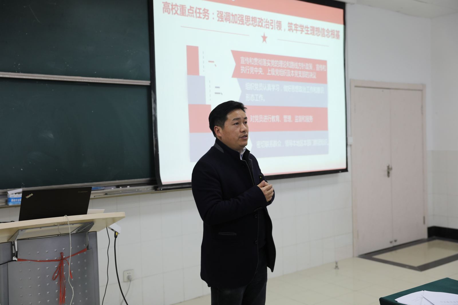 《条例》是我们党历史上第一部关于党支部工作的基础主干法规,是新时代党支部建设的基本遵循,对于加强党的组织体系建设,推动全面从严治党向基层延伸,全面提升党支部组织力、强化党支部政治功能,巩固党长期执政的组织基础,具有十分重要的意义。在党支部的基本任务方面,结合高校工作的特点,王书记特别强调指出:“高校重点任务:强调加强思想政治引领,筑牢学生理想信念根基。”这与我们的立德树人理念完全契合的,我们一定要牢牢把握思想引领这条主线,全方位拓展思政课堂,践行三全育人理念。在支部组织生活部分,对于三会一课、党课、主题党日、组织生活等与我们日常工作息息相关的部分,结合我们日常工作的特点与问题王书记做了详细的分析与介绍。在支部委员会建设部分,《条例》明确细化了职能与分工,王书记指出,支部工作很辛苦,各位书记和委员都付出了大量辛勤的工作与努力,他也谈到了奉献精神,我党的奉献及艰苦奋斗是有历史的传承,希望大家能够牢记入党誓言,做无愧于心的忠诚于党的事业。