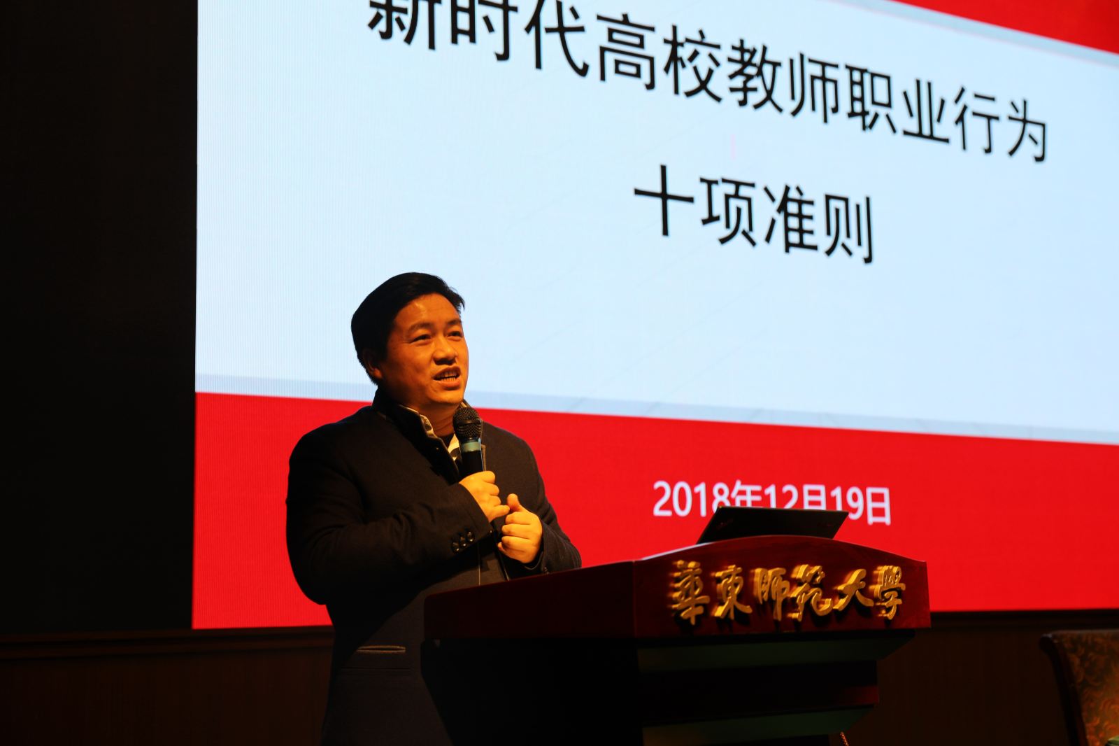 19日学院在逸夫楼报告厅召开全院教职工大会,并邀请马克思主义学院余玉花教授做主题报告《教师的地位和责任》,余教授倡导珍惜教师的职业,做老师就要执着于教书育人,有热爱教育的定力、淡泊名利的坚守。随后,学院党委书记兼常务副院长王长波教授带领全院教职工共同学习《准则》和《指导意见》,他重申,“师德师风”是不可触及的红线,学院教职工未来要加强深入学习,确保知准则、守底线,做到风清气正。他围绕教育部陈宝生部长提出的关于高等教育的“三个不合格,八个首先,四个回归”,强调教师和学生要回归教书育人与潜心学习,全院师生共同努力,继续坚持完善本科教学方面的工作。