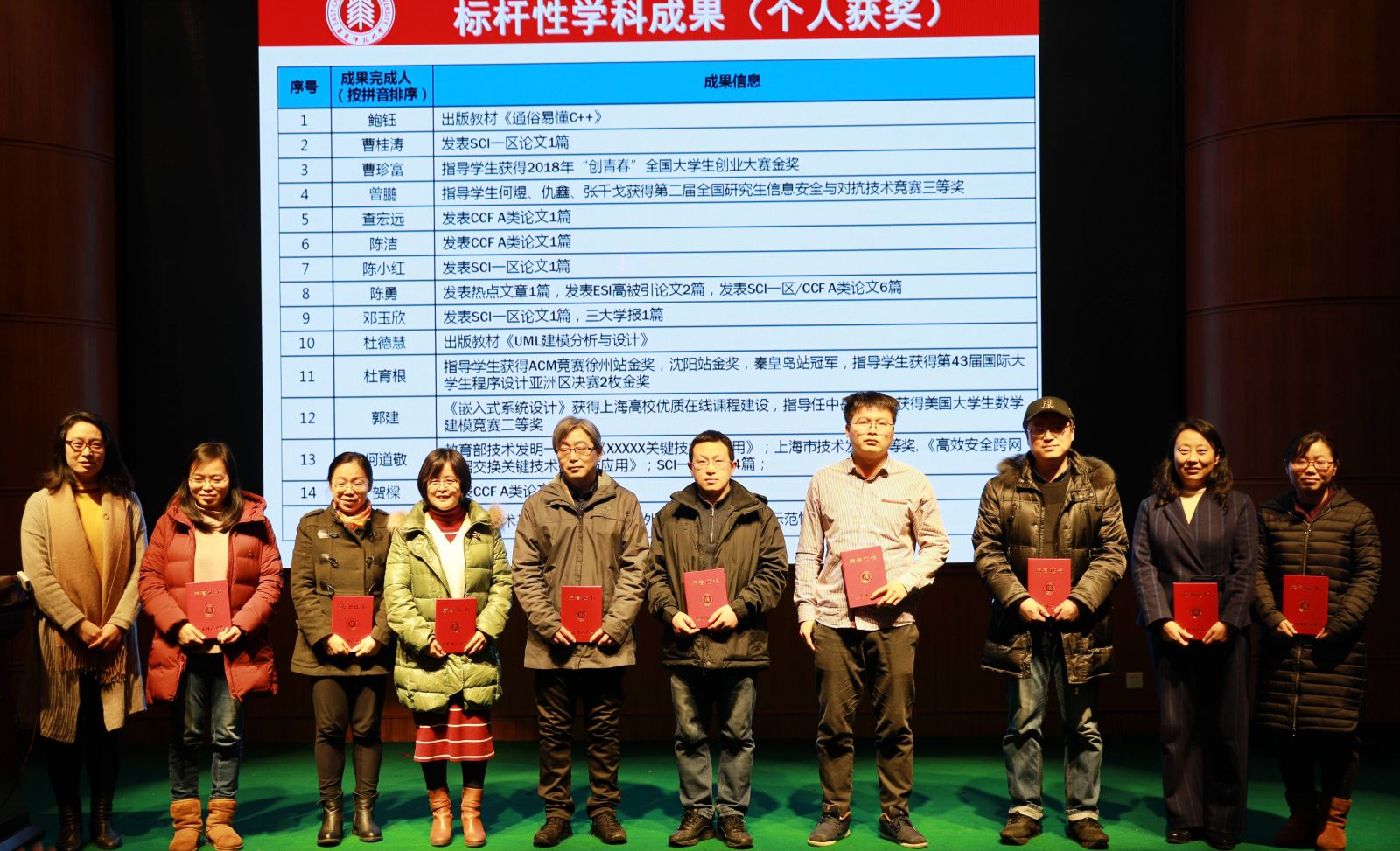 学院对2018年度标杆性学科成果奖进行表彰,包括省部级以上科研获奖、教学成果、指导学生获奖、出版教材、发表高水平论文等多个类别共计95项成果。