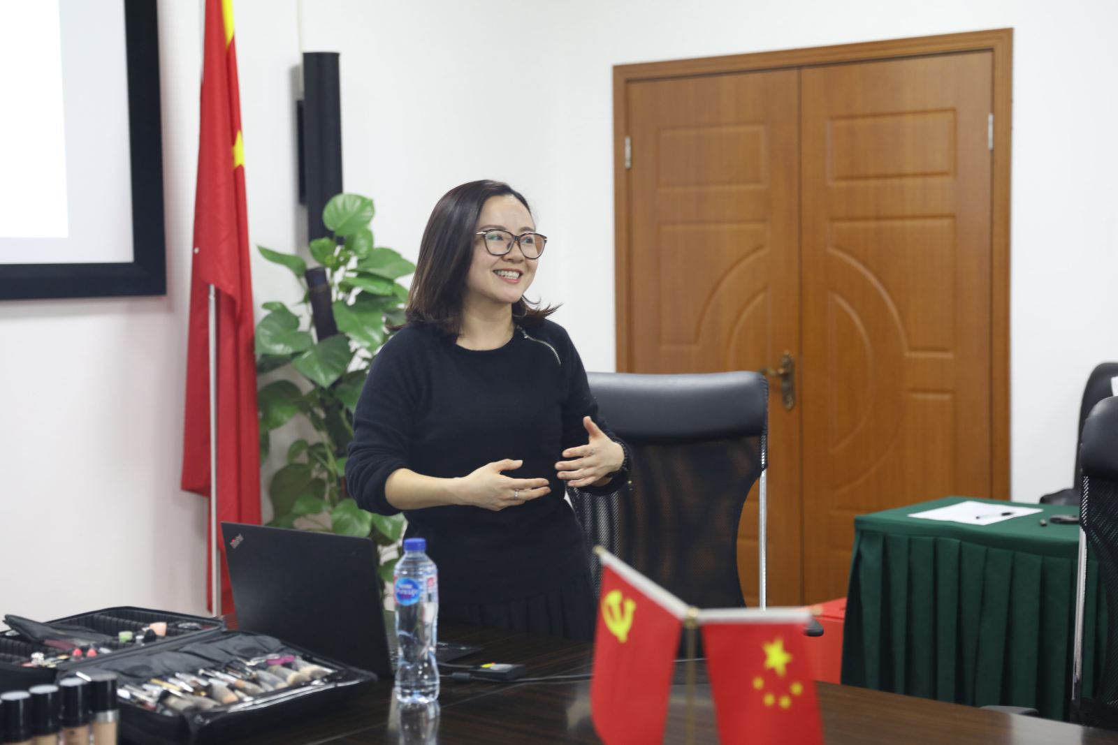 为便于在场女教师们更准确地把握符合自身特质的妆容打扮,冯老师亲自为学员们做一对一的妆容指导,并耐心解答包括如何采购化妆品、上妆注意事项等提问。学院还贴心地为现场的每一位女教师准备了口红、眉笔、化妆棉等礼物,为老师们的美丽形象提升提供了最实际的支持。