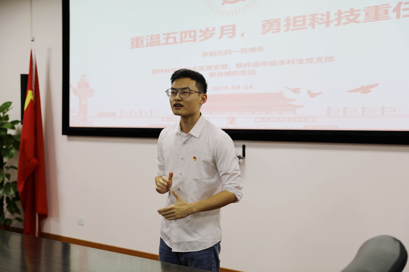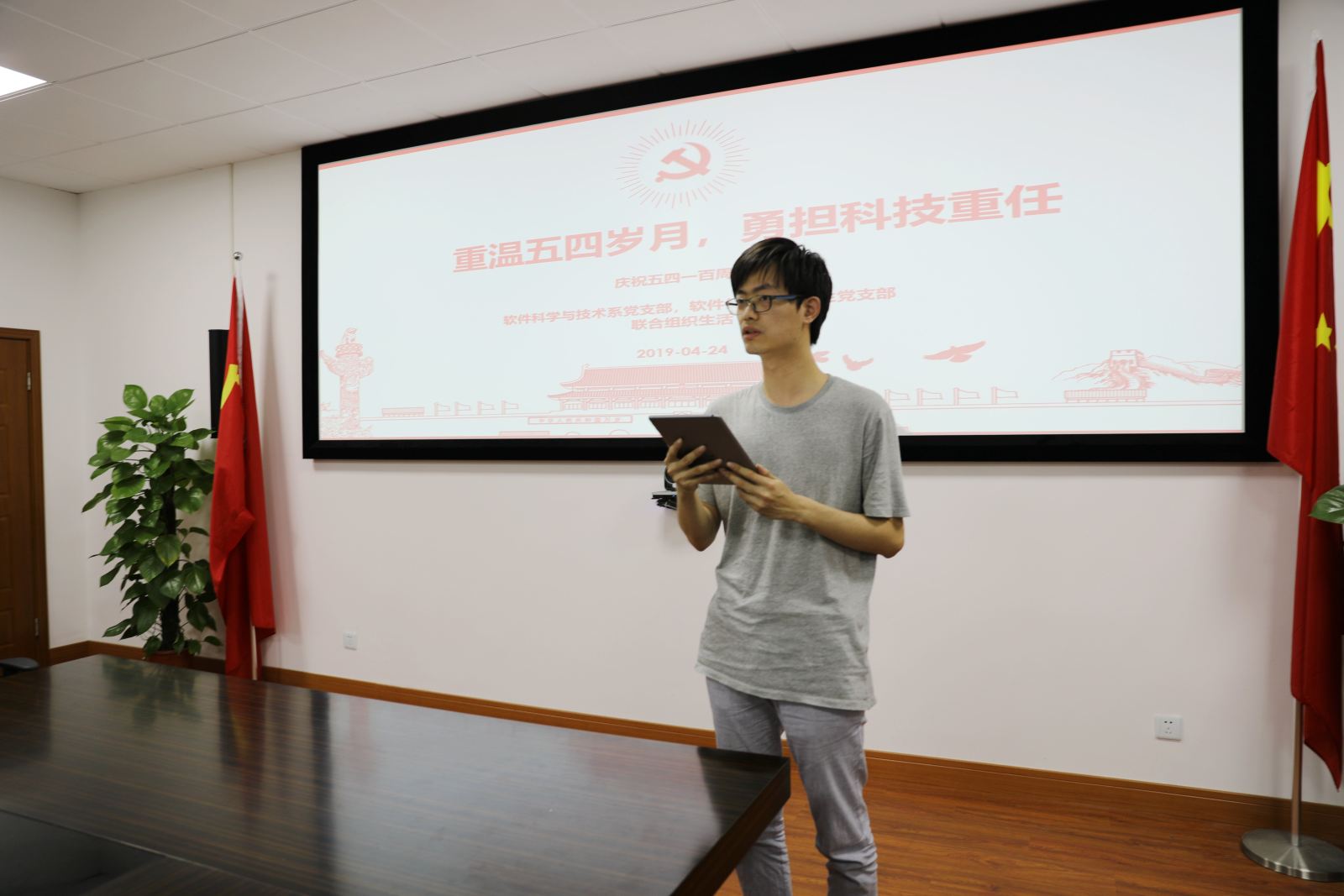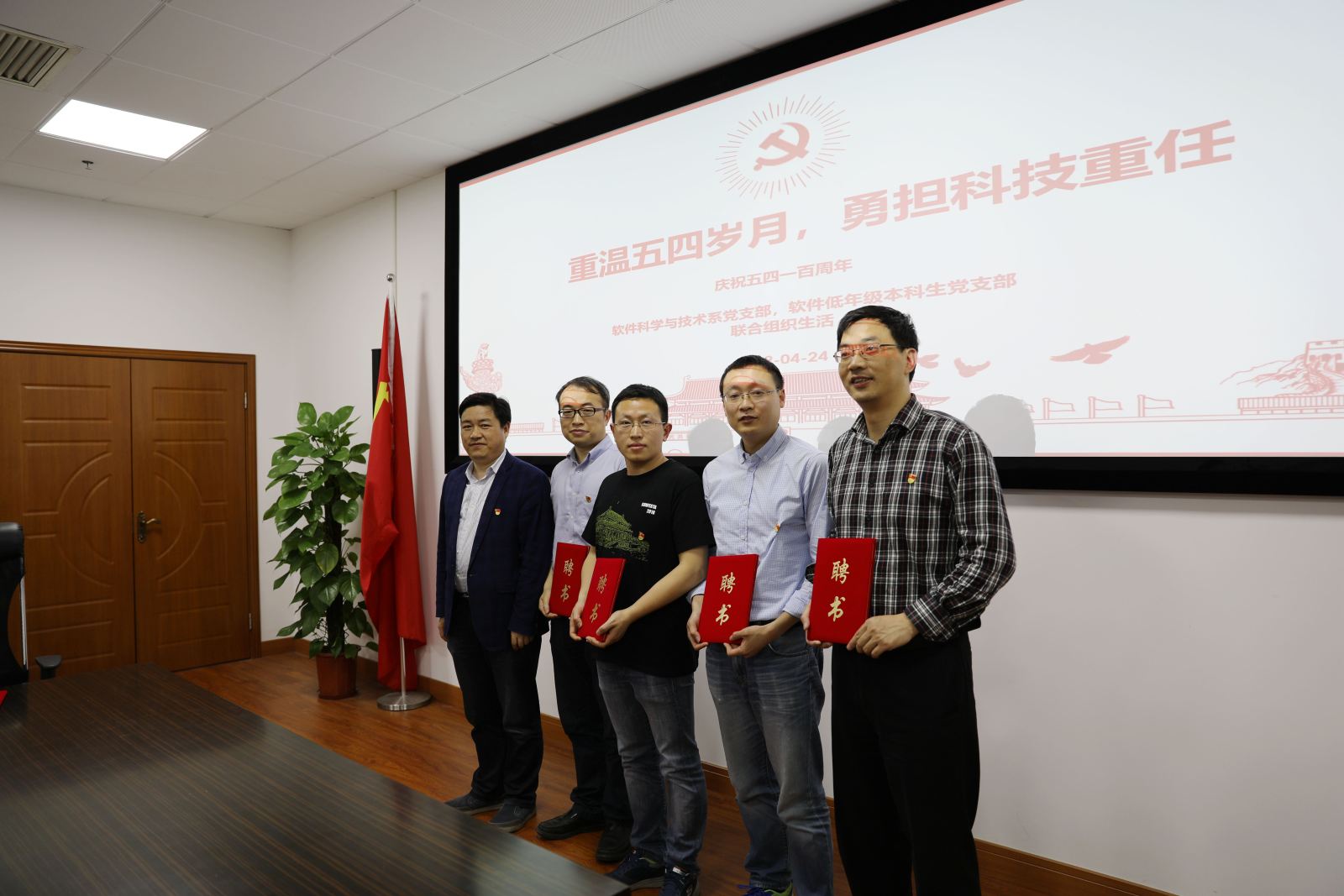 4月24日,软件科学与技术系党支部与软件低年级本科生党支部在理科大楼B504开展了联合组织生活,围绕“重温五四岁月,勇担科技重任”的主题,教师党员与学生党员代表联系自己的成长经历和工作学习,就如何更好发挥青年同志作用、践行“五四”精神进行了热烈的讨论。软件科学与技术系党支部及软件低年级本科生党支部的30余名党员参加了此次活动。本次联合组织生活活动由学院党委书记助理彭超老师主持。